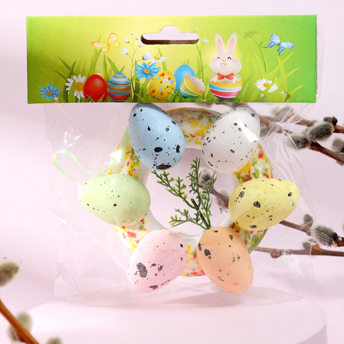 Пасхальный декор для творчества «Яйцо с лентой», набор 9 шт., яйцо 4.5×3 см, 3.7×14.5×14.5 см, МИКС