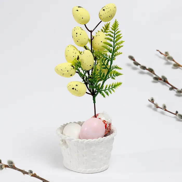 Пасхальный декор «Яйца на ветке» жёлтого цвета, 5×11×30 см