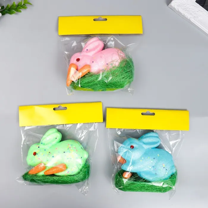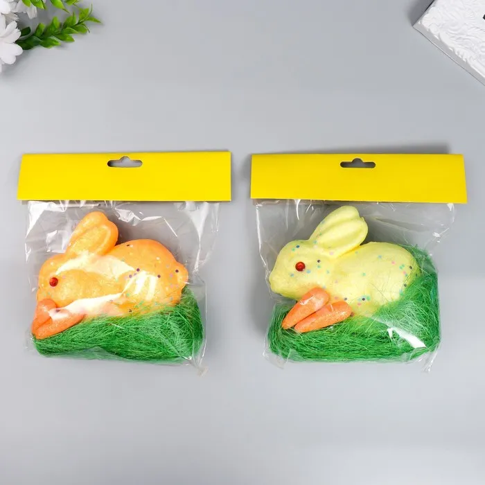 Пасхальный декор «Кролик, конфетти, в травке с морковками», набор 4 шт., 13 см, настольная фигурка, МИКС — Характеристики