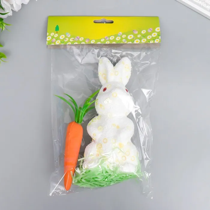 Пасхальный декор «Кролик в посыпке с морковкой и травкой», набор 15 см, настольная фигурка — Характеристики