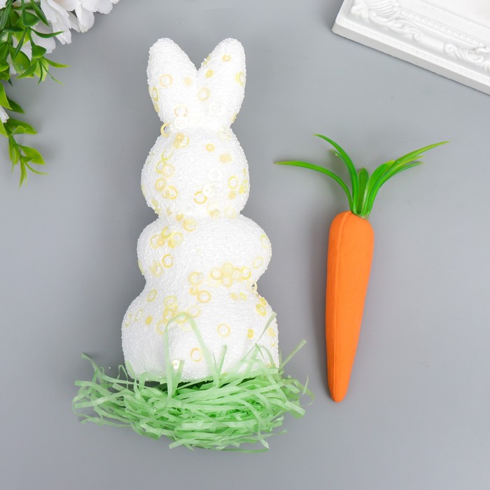 Пасхальный декор «Кролик в посыпке с морковкой и травкой», набор 15 см, настольная фигурка
