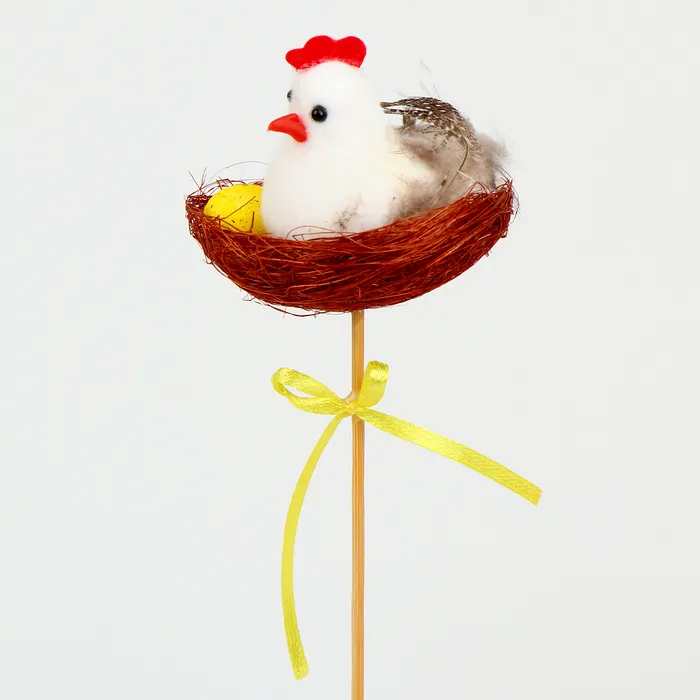 Пасхальный декор на палочке «Курочка в гнезде», 7×7×28 см, в гнёздышке — Характеристики