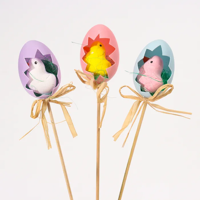 Пасхальный декор на палочке «Цыплята в яице», 3 шт., 4×12.5×25 см — Характеристики