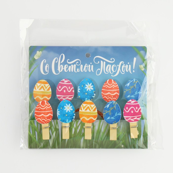 Пасхальный декор, набор прищепок для украшения вербы «Со Светлой Пасхой!», 10×12 см
