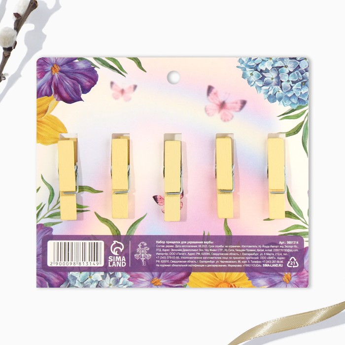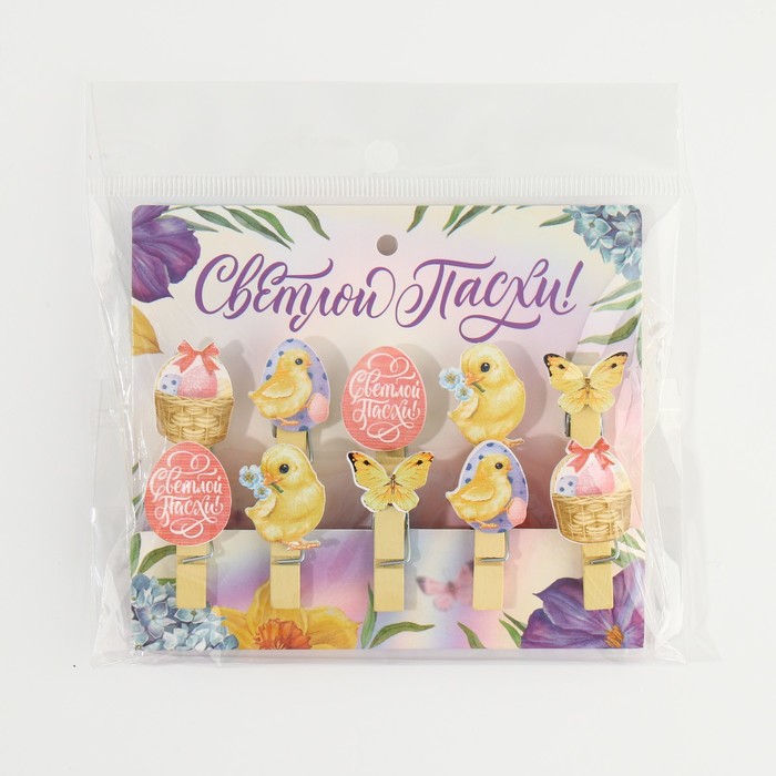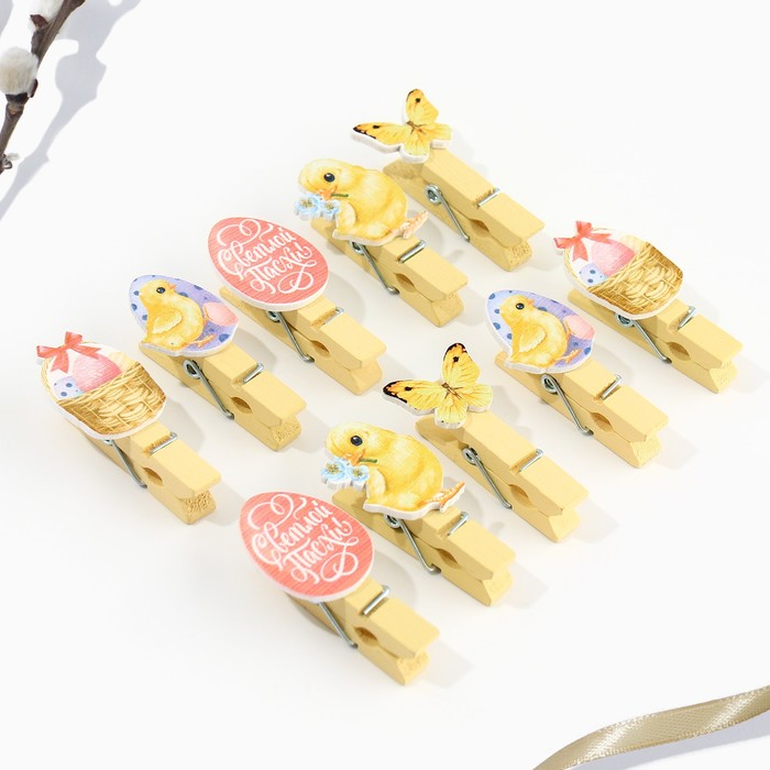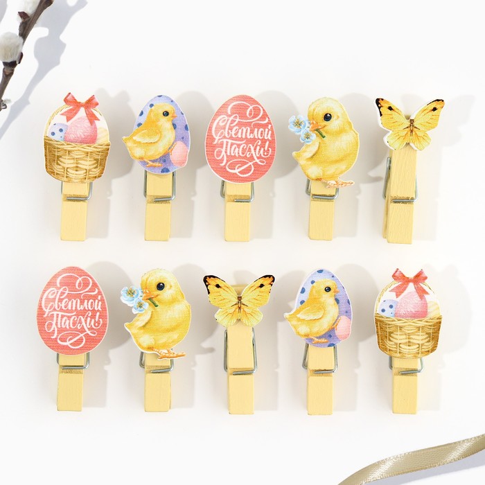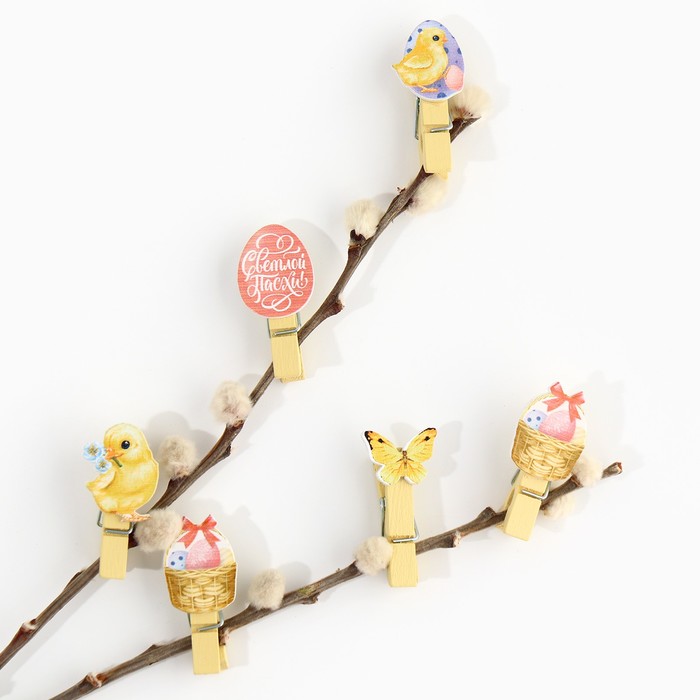 Пасхальный декор, набор прищепок для украшения вербы «Светлой Пасхи!», 10×12 см