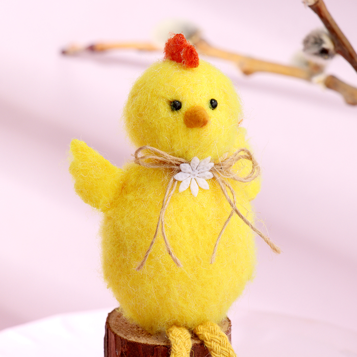 Пасхальный декор «Кролик с ленточкой и цветком на шее», 13 см, настольная фигурка, МИКС
