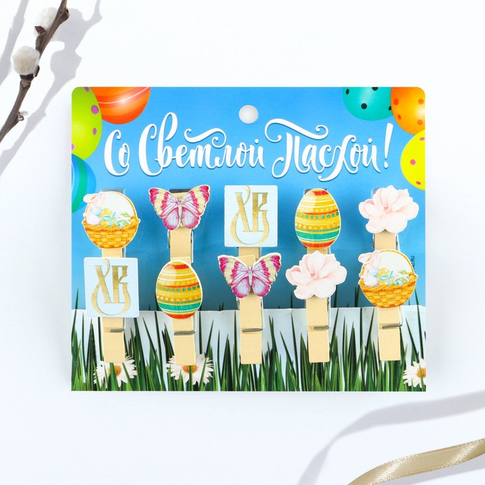 Пасхальный декор, прищепки для украшения вербы «Со Светлой Пасхой», 10×12 см