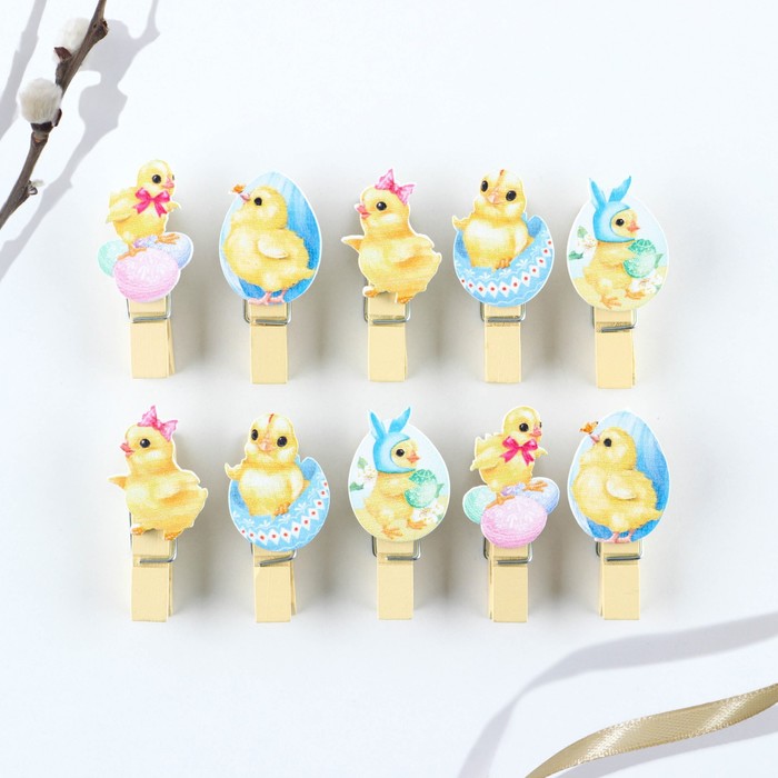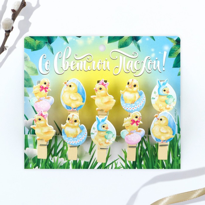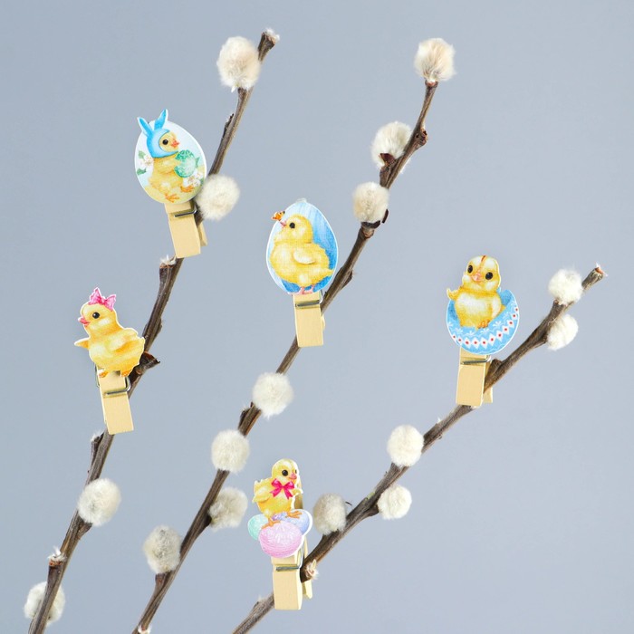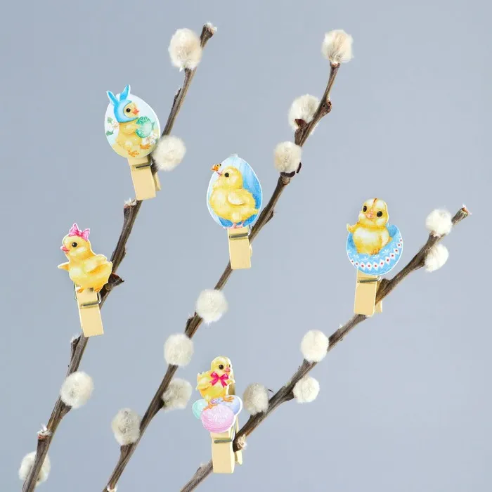 Пасхальный декор, прищепки для украшения вербы «Цыплята» на пасху, 10×12 см
