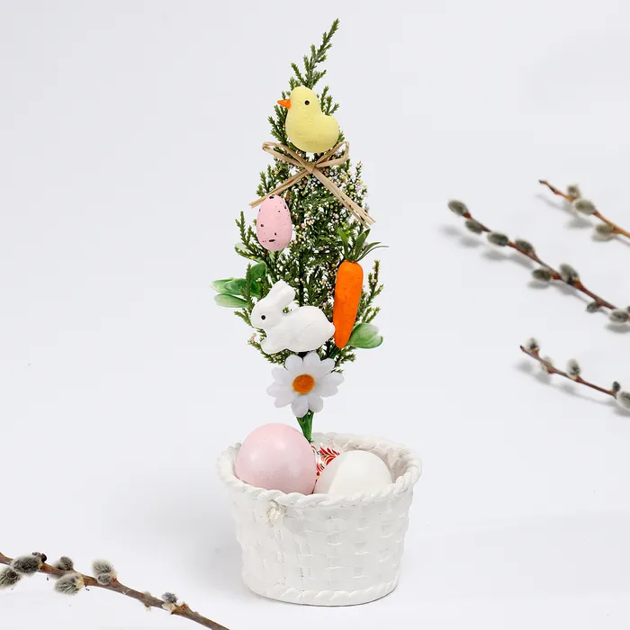 Пасхальный декор «Зайчата в посыпке с морковкой и травкой», набор 12 см, настольная фигурка