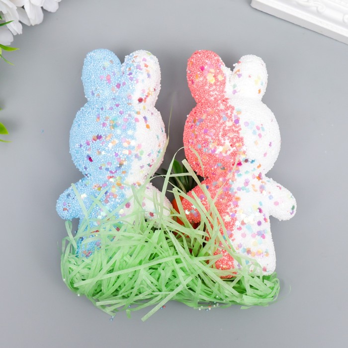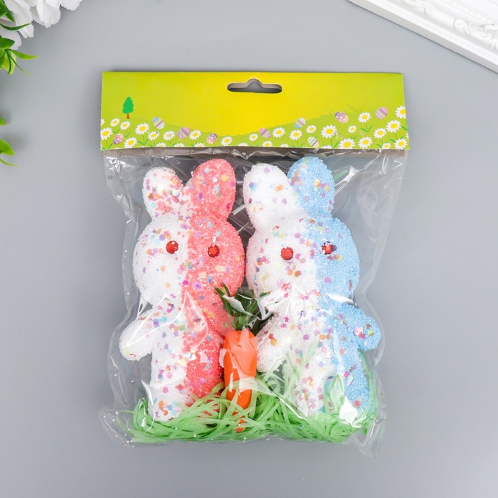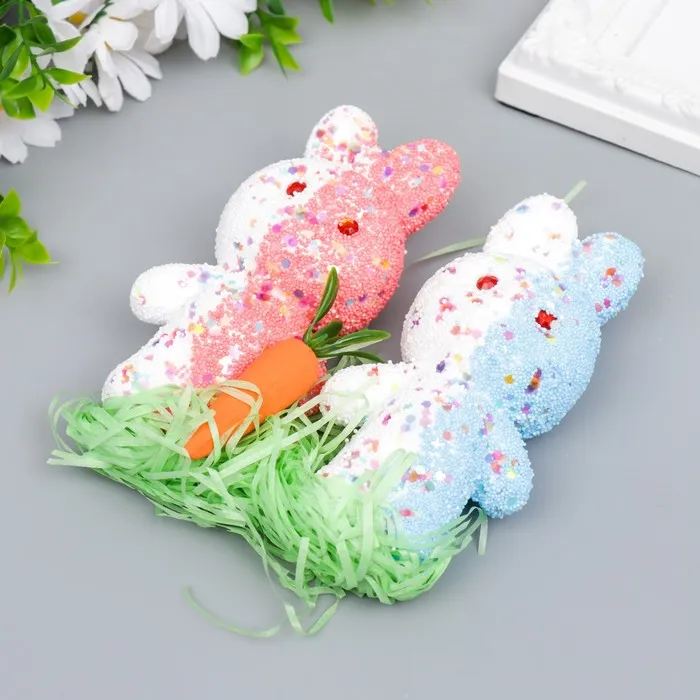 Пасхальный декор «Зайчата в посыпке с морковкой и травкой», набор: розовый, голубой, 12 см, настольная фигурка — Характеристики