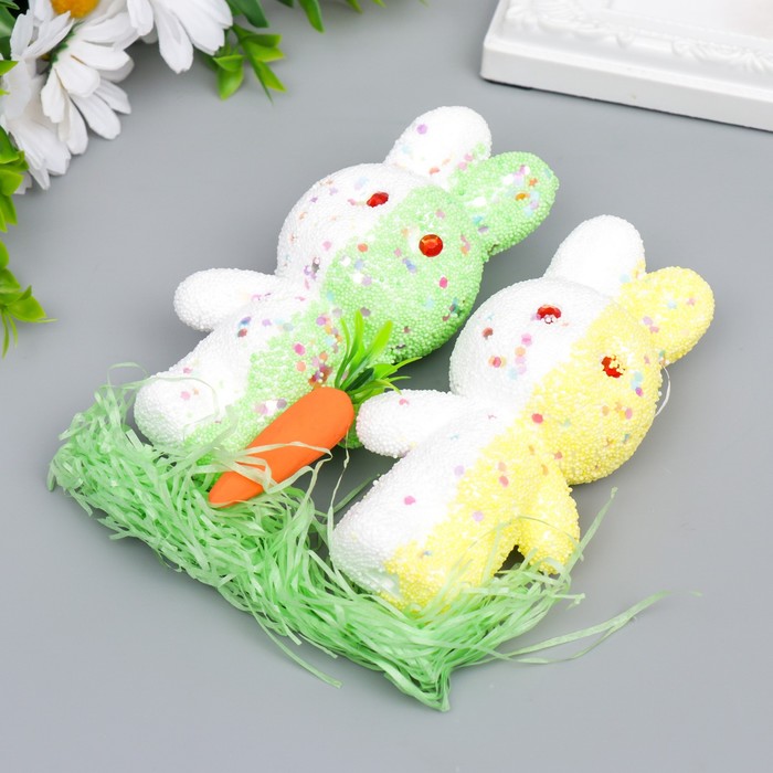 Пасхальный декор «Зайчата в посыпке с морковкой и травкой», набор: жёлтый, зелёный, 12 см, настольная фигурка
