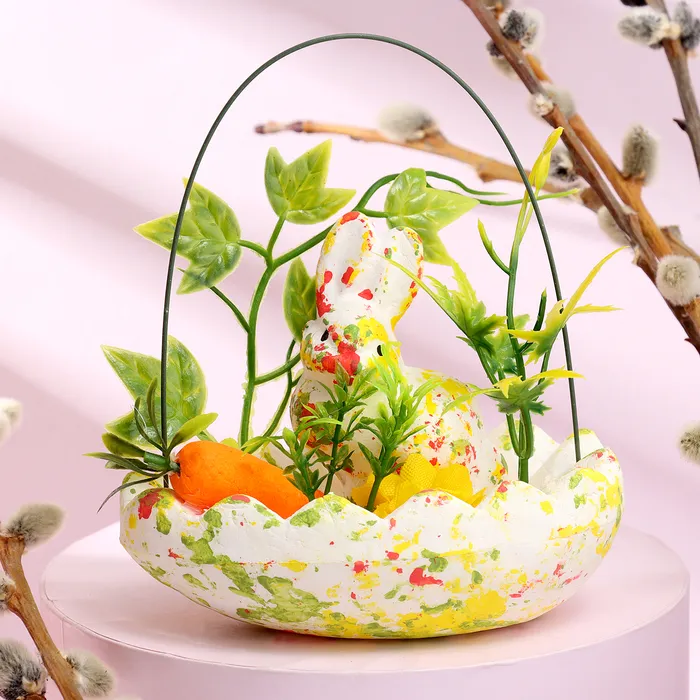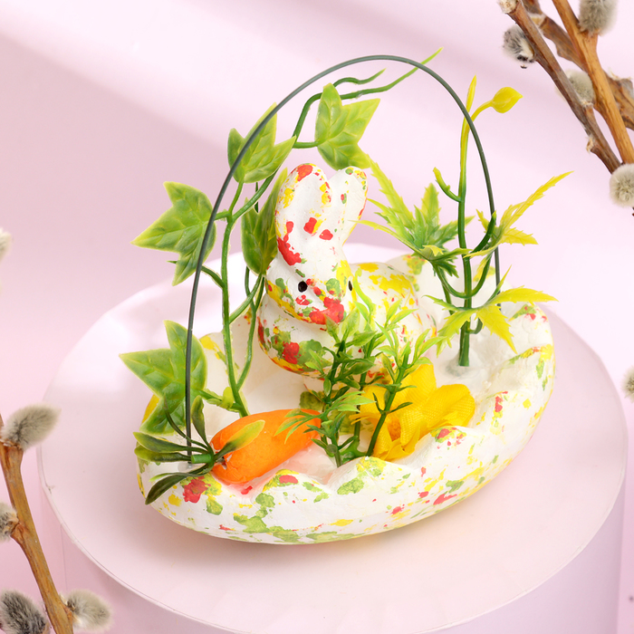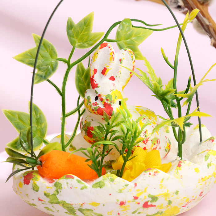 Пасхальный декор «Зайчата в посыпке с морковкой и травкой», набор 12 см, настольная фигурка