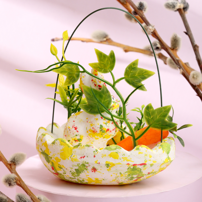 Пасхальный декор «Зайчата в посыпке с морковкой и травкой», набор: жёлтый, зелёный, 12 см, настольная фигурка