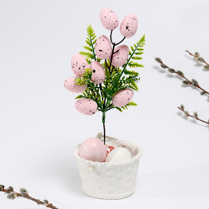 Декор на пасху «Яйца на ветке» розового цвета, 5×11×30 см