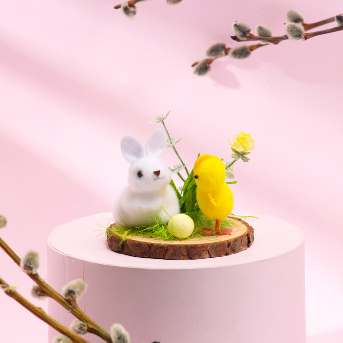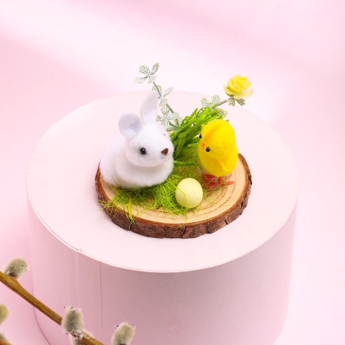 Пасхальный декор «Зайчик и цыпленок на полянке» 8×8×7 см