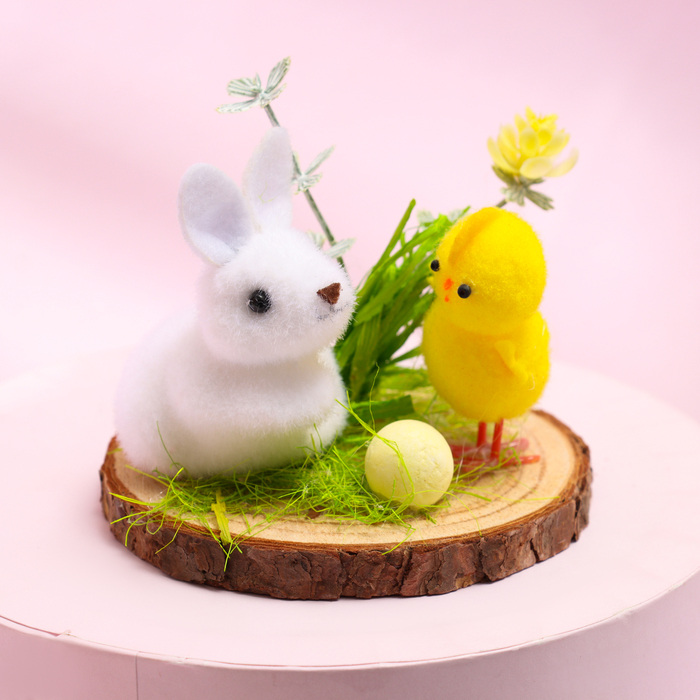 Пасхальный декор «Зайчик и цыпленок на полянке» 8×8×7 см — Характеристики