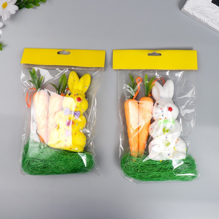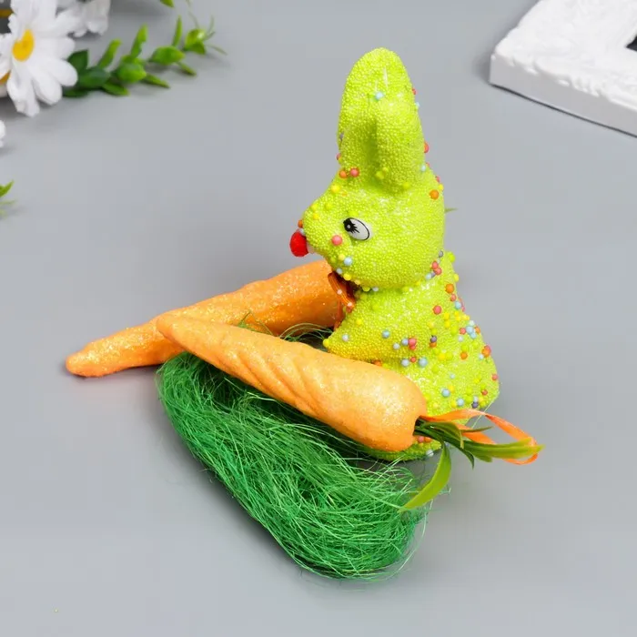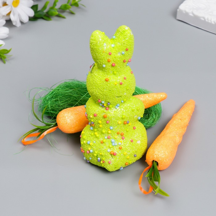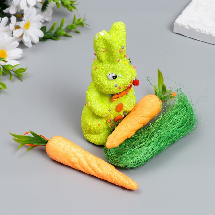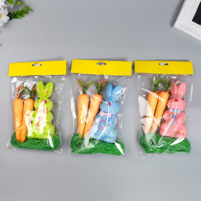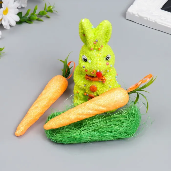 Пасхальный декор «Зайчик с морковками и травкой», набор 4 шт., 15 см, настольная фигурка, МИКС — Характеристики