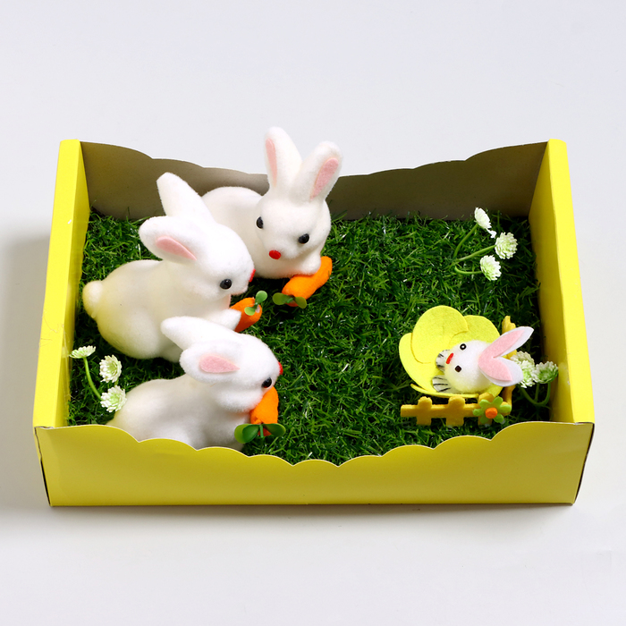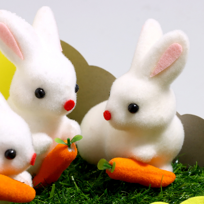 Пасхальный декор «Зайчата в посыпке с морковкой и травкой», набор 12 см, настольная фигурка