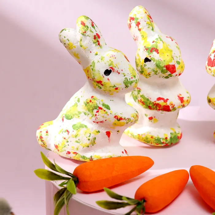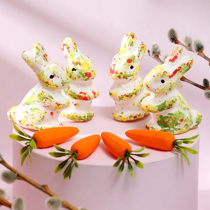 Пасхальный декор «Зайчата в посыпке с морковкой и травкой», набор 12 см, настольная фигурка