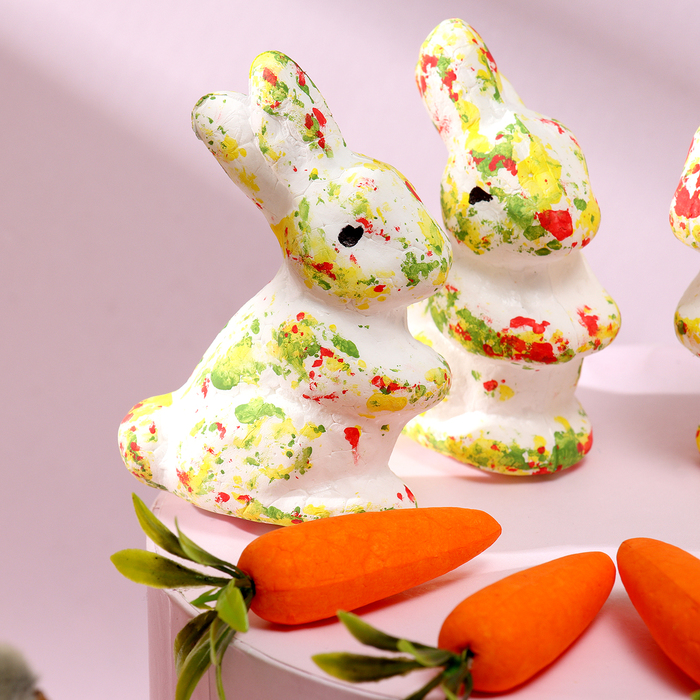Пасхальный декор «Кролик, конфетти, в травке с морковками», набор 4 шт., 13 см, настольная фигурка, МИКС