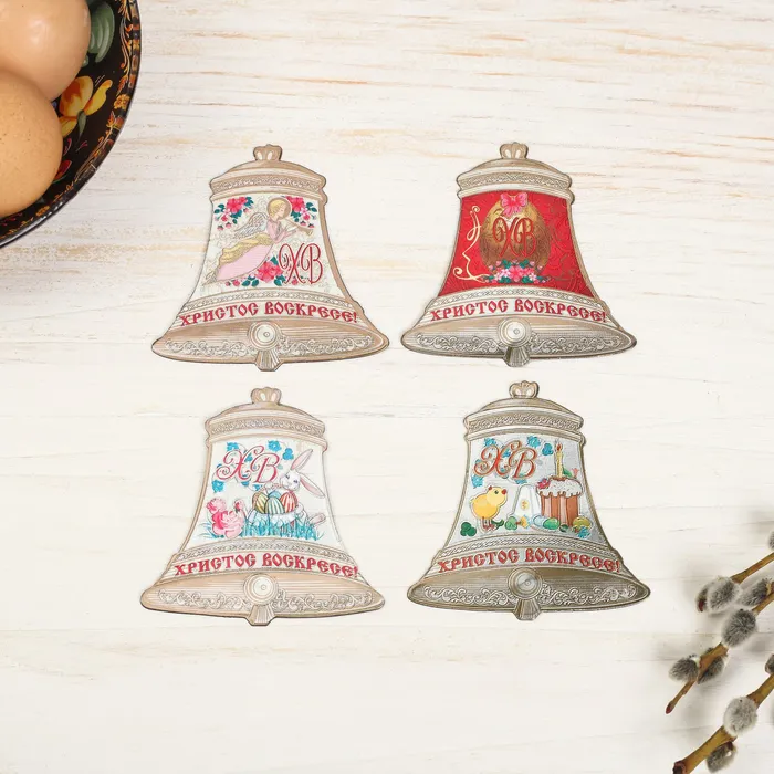 Пасхальный магнит-колокольчик, МИКС - изготовлен из фольгированного пластика с полноцветным, насыщенным изображением. Выглядит по-настоящему ярко и торжественно, полностью соответствует празднику Пасхи. Аналогов таких пасхальных магнитов Вы больше ни у кого не найдете.