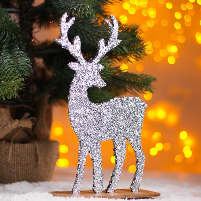 Декор новогодний «Яркий олень» серебряный, 6×14×24 см