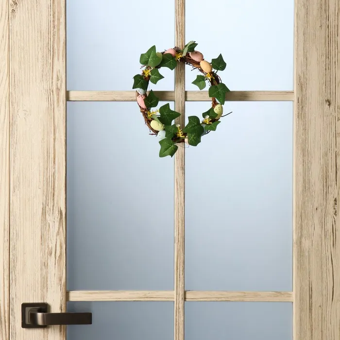 Пасхальный венок на дверь «Яички с листочками», настенный декор, d=18 см