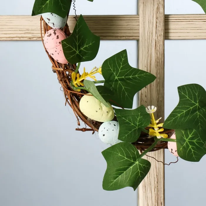 Пасхальный венок на дверь «Яички с листочками», настенный декор, d=18 см — Характеристики