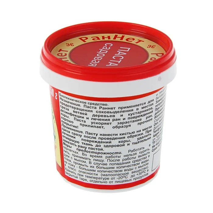 РанНет — это специальная паста, предназначенная для заживления повреждений на садовых деревьях, способствующая быстрому восстановлению и защите от болезней.