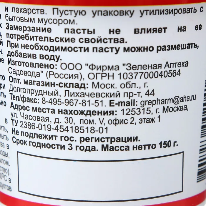 Паста для заживления повреждений садовых деревьев РанНет 150 г — Характеристики