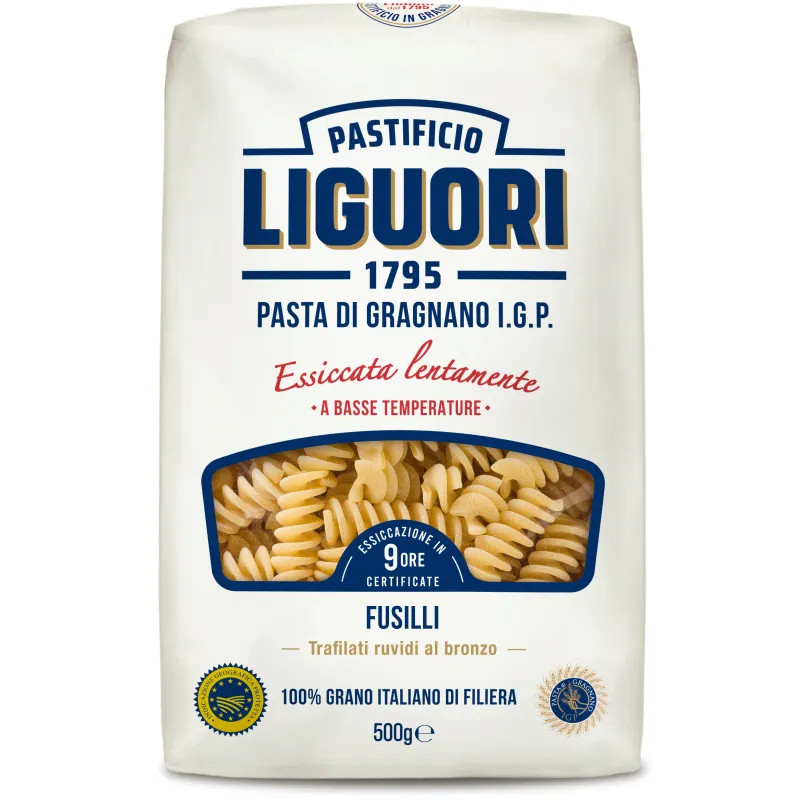 Liguori Fusilli – это высококачественная итальянская спиральная паста. Изготовлена из 100 % итальянской дурум-пшеницы по традиционному методу. Паста, пропущенная через бронзовую матрицу, сушится медленно при низкой температуре, сохраняя питательные свойства пшеницы и отлично удерживая свою структуру.