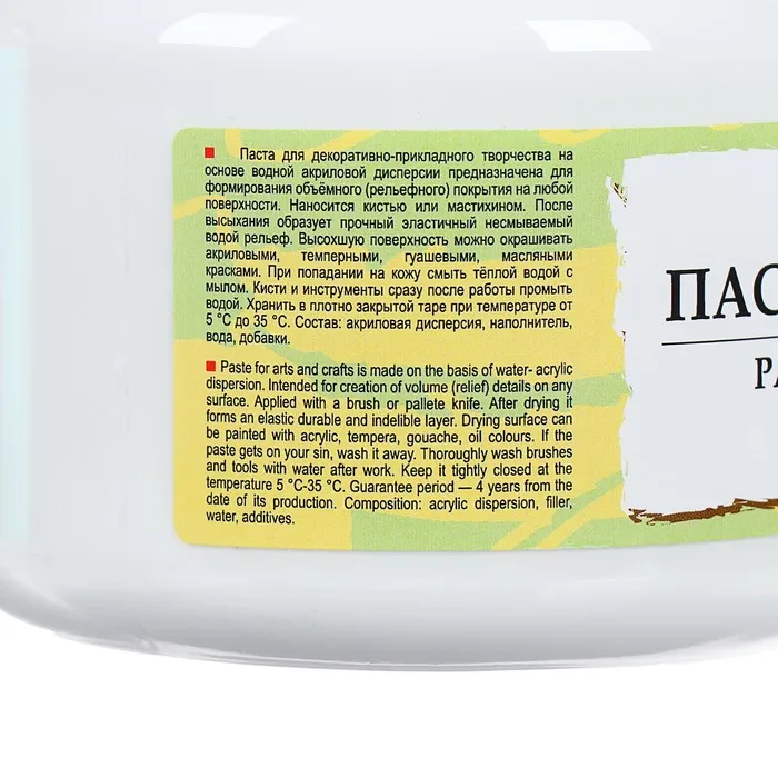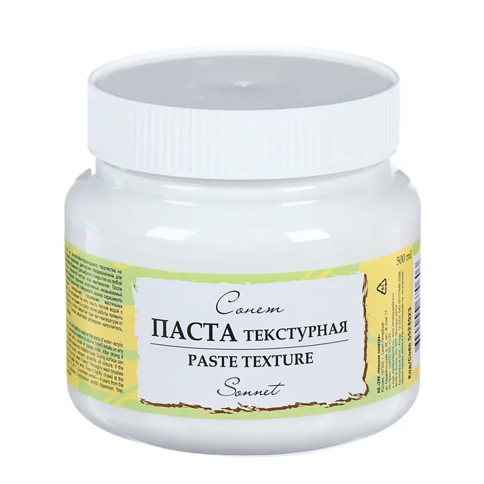 Паста для декоративно-прикладного творчества "Сонет", на основе водной акриловой дисперсии предназначается для создания рельефного, объемного покрытия на любой поверхности.