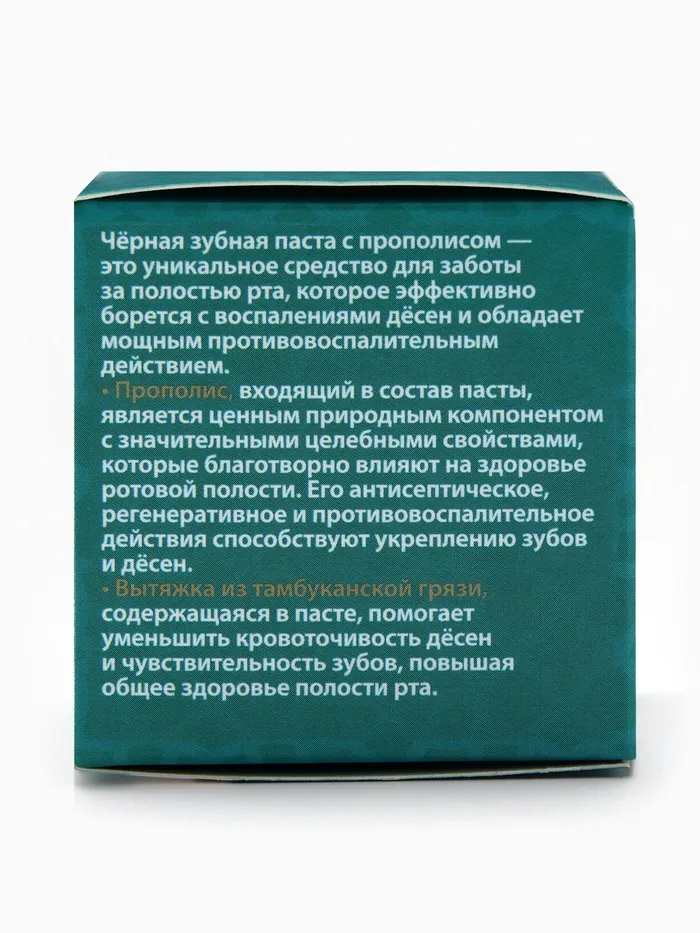 Экстракт прополиса, известный своими антибактериальными и противовоспалительными свойствами, укрепляет десны и предотвращает развитие кариеса. Черный уголь глубоко очищает эмаль, удаляя налет и освежая дыхание.
