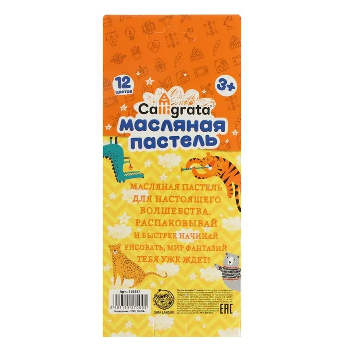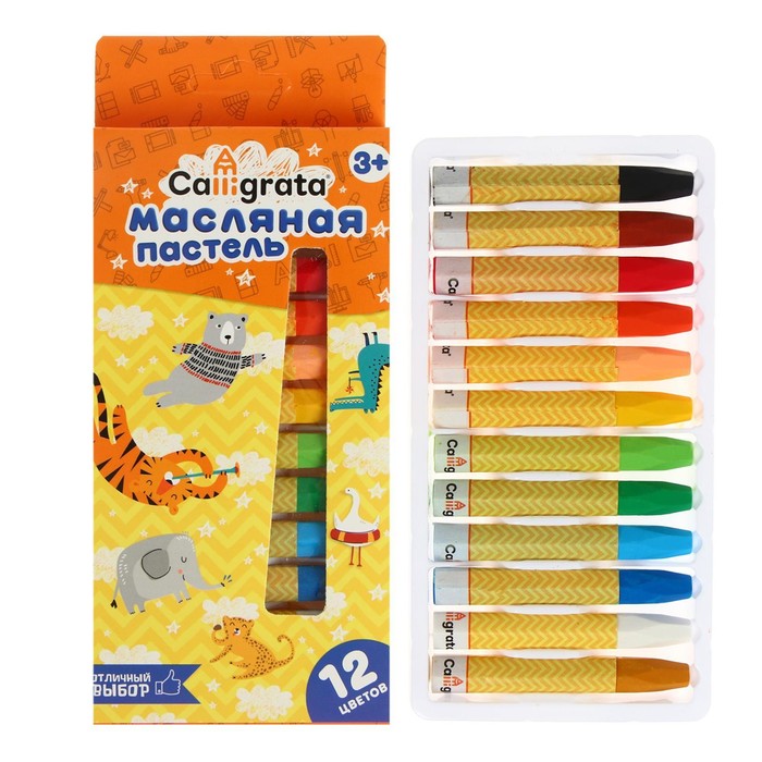 Пастель масляная Calligrata, 12 цветов, в картонной коробке с европодвесом — Характеристики