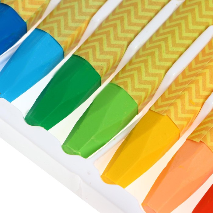 12 ярких цветов позволяют передать цветовую палитру.Высокое качество пигментов и связующего обеспечивает низкий расход материала, хорошую укрывистость и яркость цвета.Пастель имеет шестригранный вид утолщенных брусков, устойчивых к поломке, с круглым сечением, обёрнутых в бумажную обёртку.Она позволяет сохранять руки и одежду чистыми.