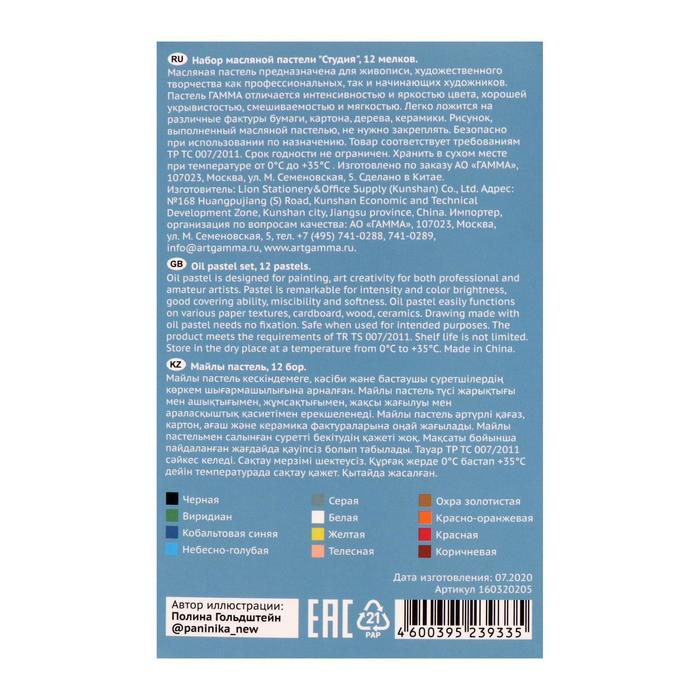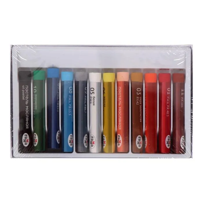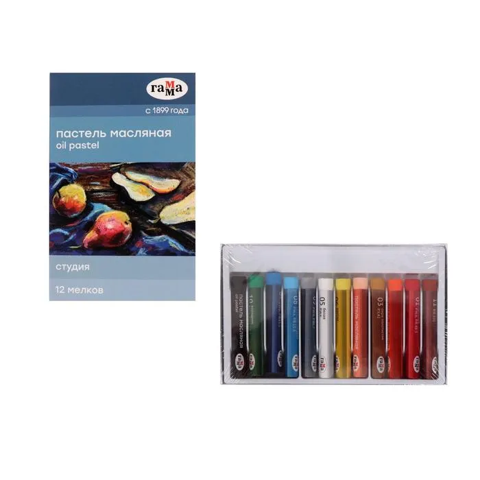 Пастель масляная, набор 12 цветов, Гамма "Студия", d-8мм, l-65мм, в картонной коробке — Характеристики