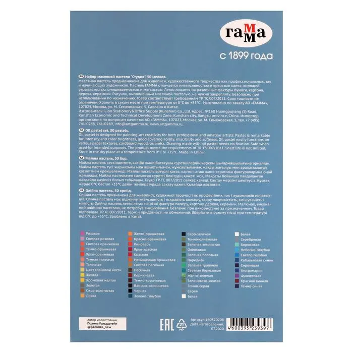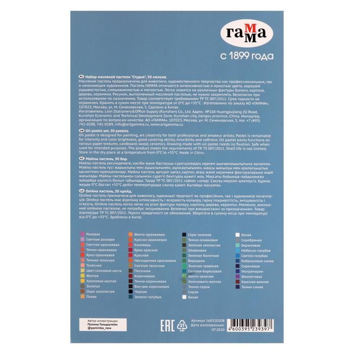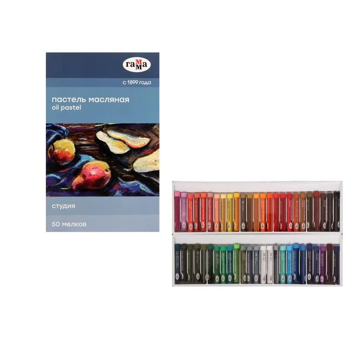 Пастель масляная, набор 50 цветов, Гамма "Студия", d-8мм, l-65мм, в картонной коробке — Характеристики