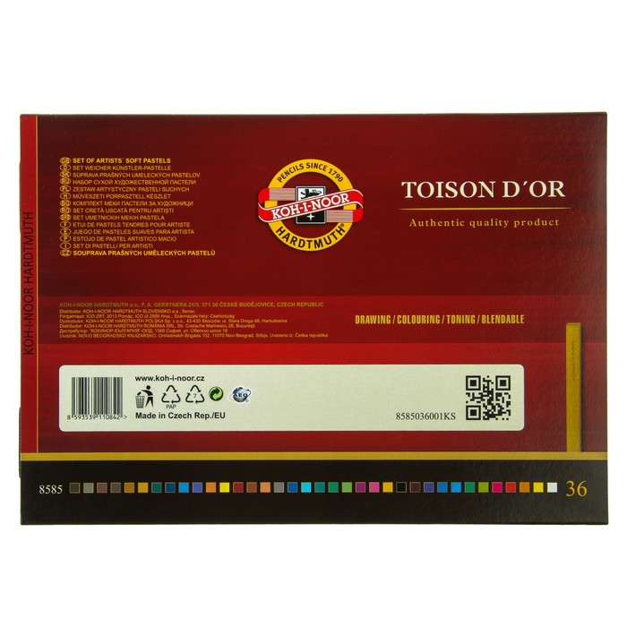 Пастель сухая художественная 36 цветов, Soft Koh-I-Noor TOISON D`OR 8585 — Характеристики