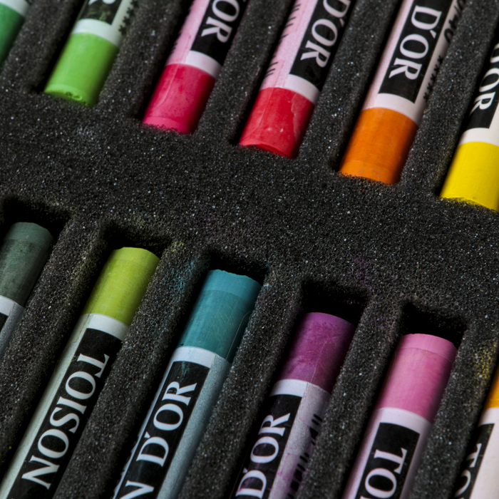 Сухая пастель Toison d'or extra soft изготавливается из высококачественных пигментов с минимальным использованием связующего элемента. Высокая концентрация пигмента способствует легкому распределению тона по светлым и темным поверхностям, а тонкий помол пигмента дает неограниченные возможности в создании фона и новых оттенков цвета путем смешивания.
