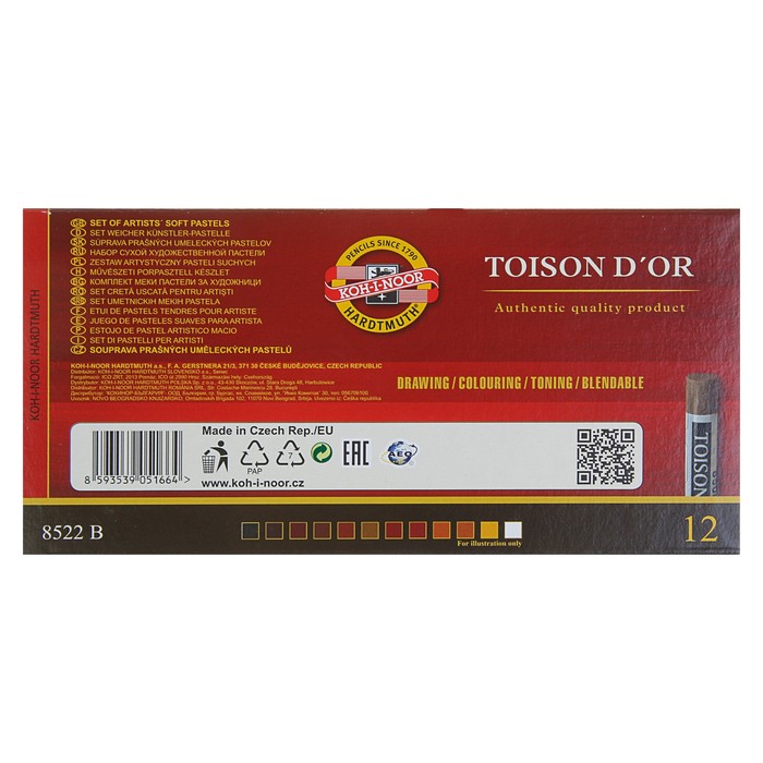 Пастель сухая художественная Soft Koh-I-Noor TOISON D`OR 8522, 12 цветов, градация коричневого — Характеристики