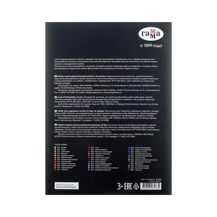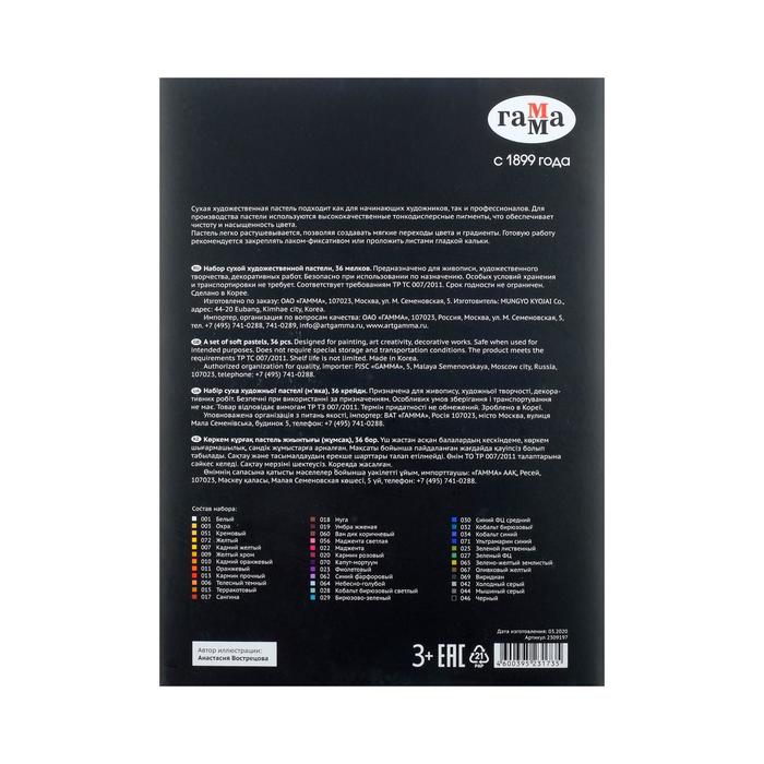 Пастель сухая, набор 36 цветов, Гамма "Старый мастер", базовые цвета /Корея/ — Характеристики