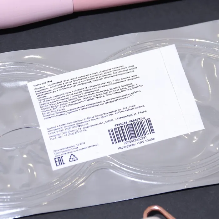 Способ применения: извлеките патчи и нанесите на очищенную кожу вокруг глаз. Снимите через 20–30 минут и сделайте лёгкий массаж подушечками пальцев. Для достижения наилучшего эффекта храните упаковку с патчами в холодильнике.