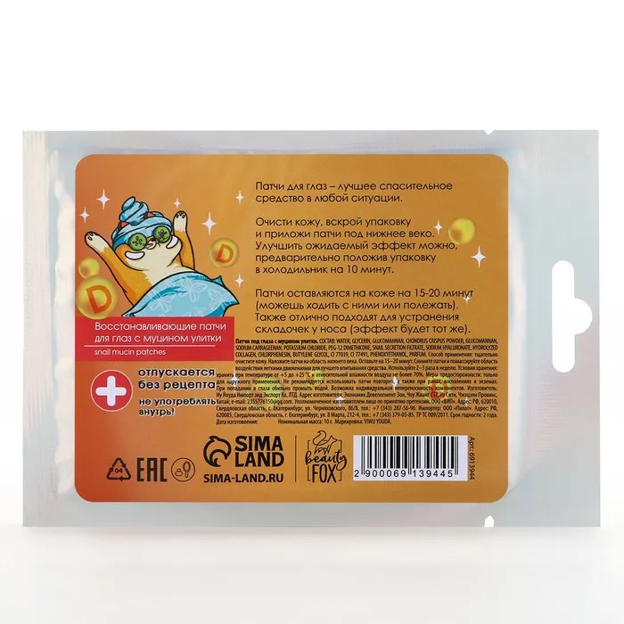 Патчи для глаз «Bn Воодушевин», 1 пара, гидрогелевые с муцином улитки, Beauty Fox — Характеристики