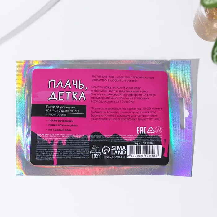 Патчи для глаз «Слезы моих бывших», 1 пара, гидрогелевые с коллагеном, Beauty Fox — Характеристики