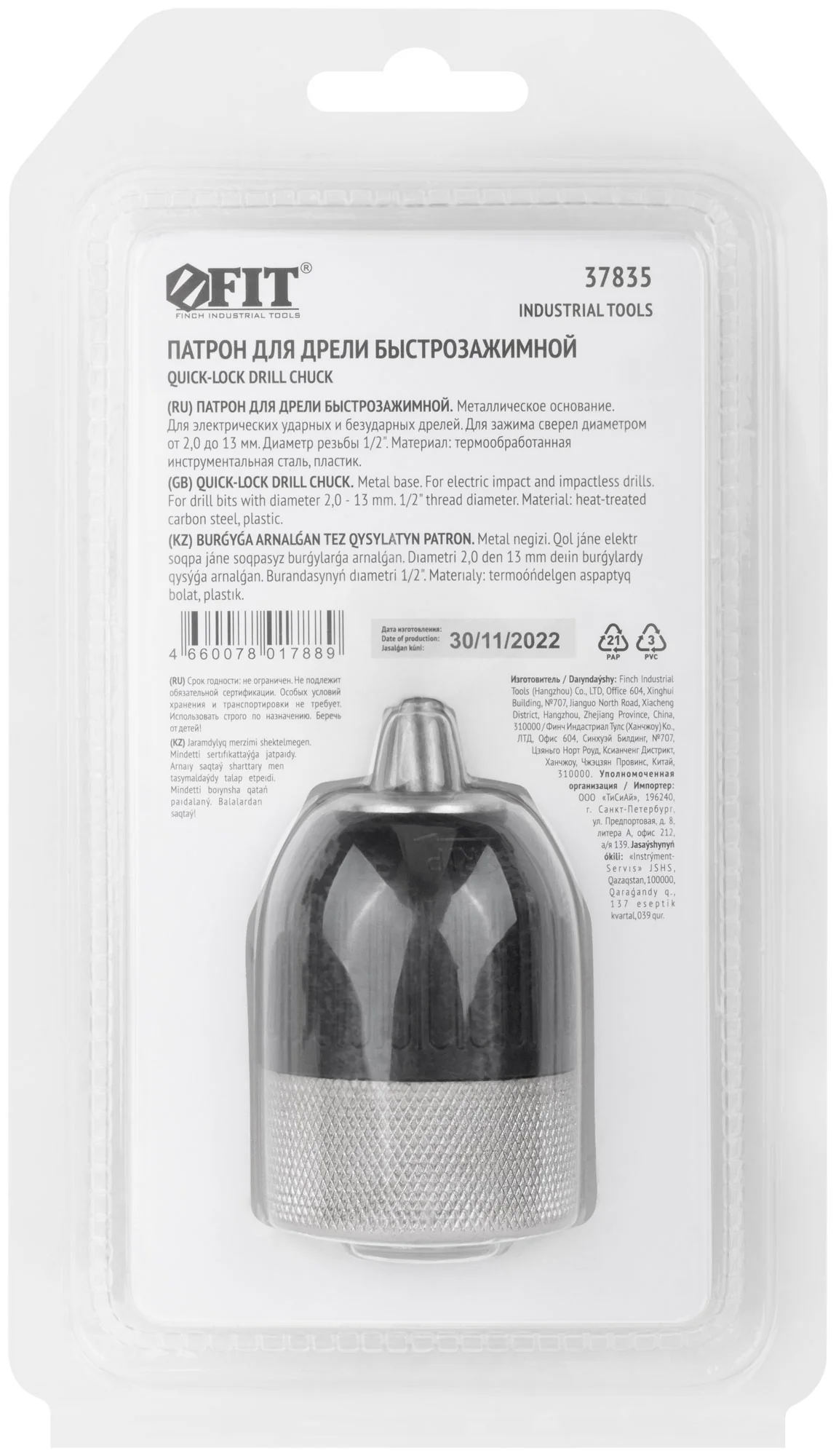Выберите патрон быстрозажимной 1/2" - 13 мм от FIT, чтобы облегчить и ускорить вашу работу.
