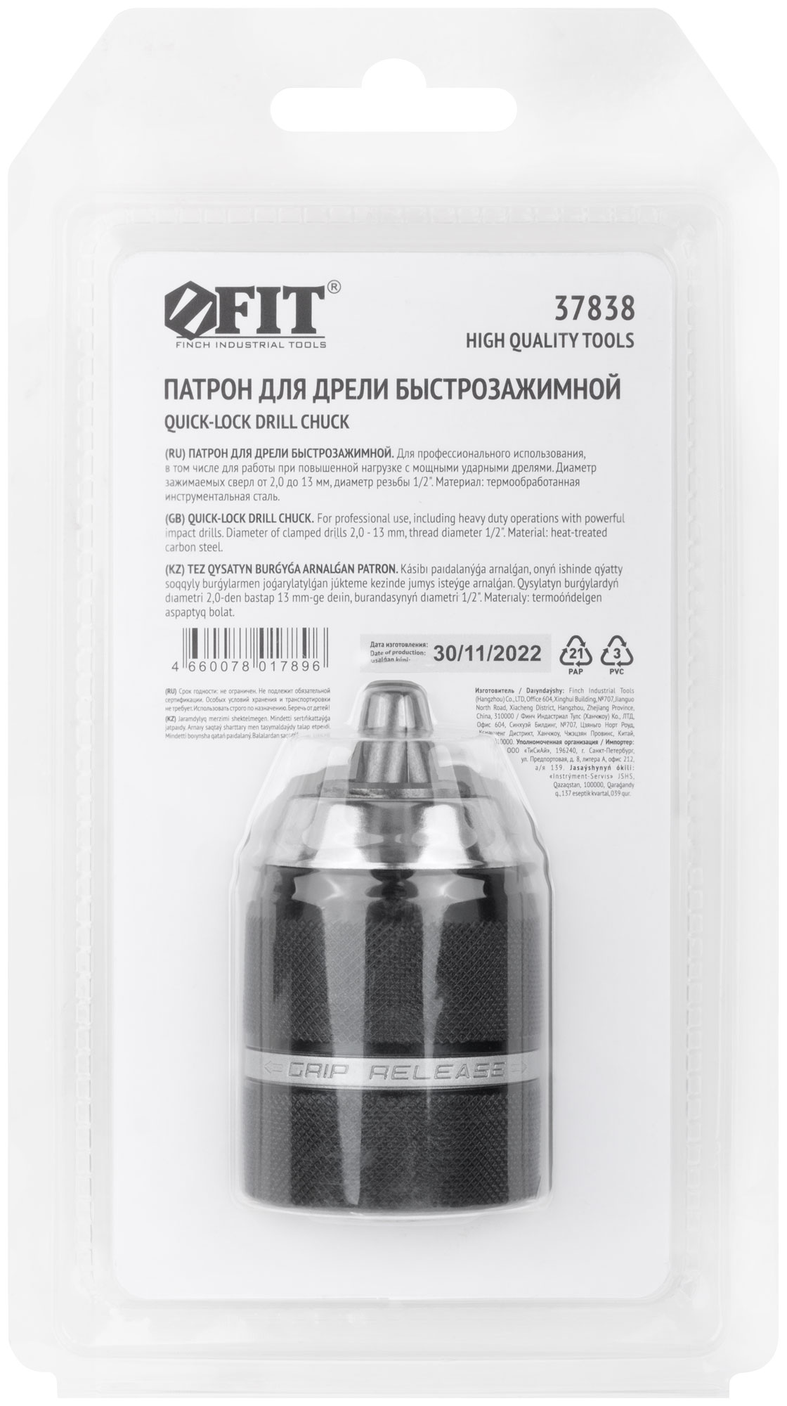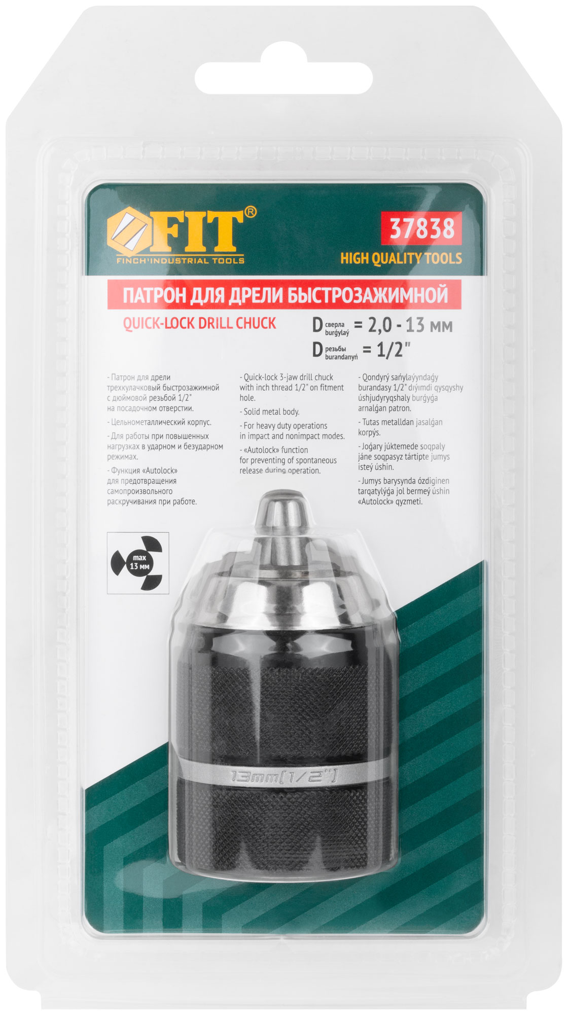 Выберите быстрозажимной патрон FIT HQ, код 37838, чтобы обеспечить надежную фиксацию сверла и сократить время на смену инструментов.