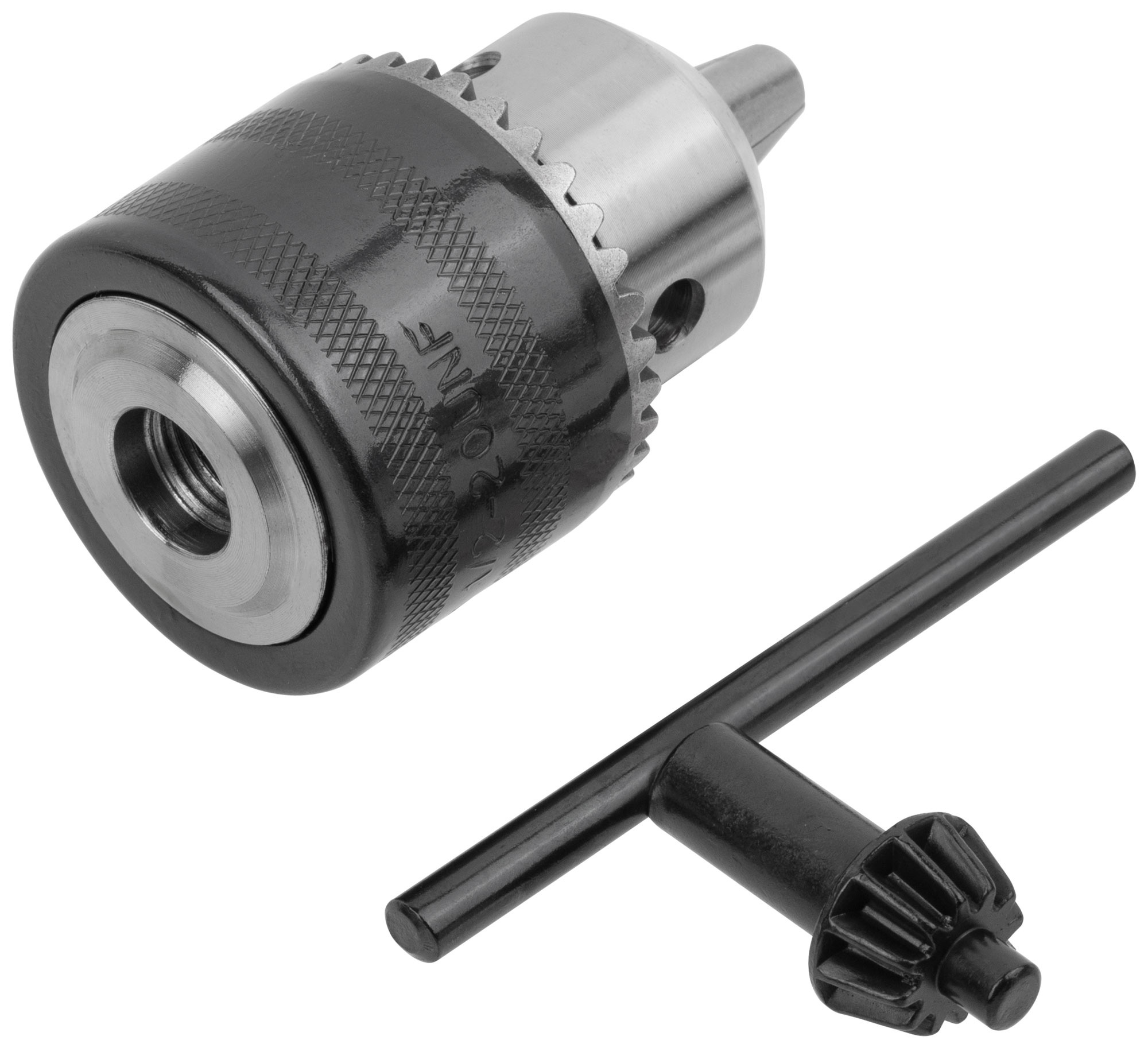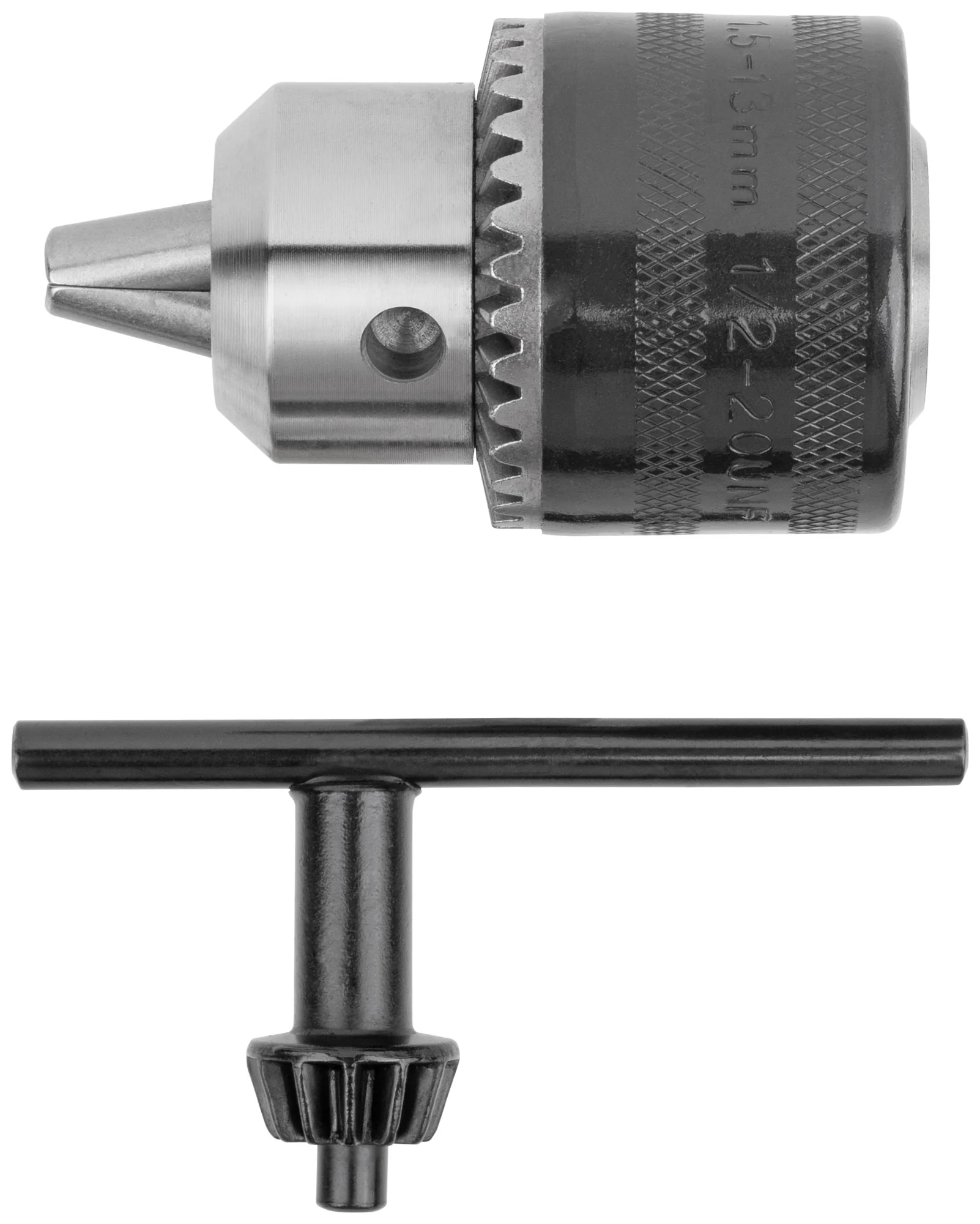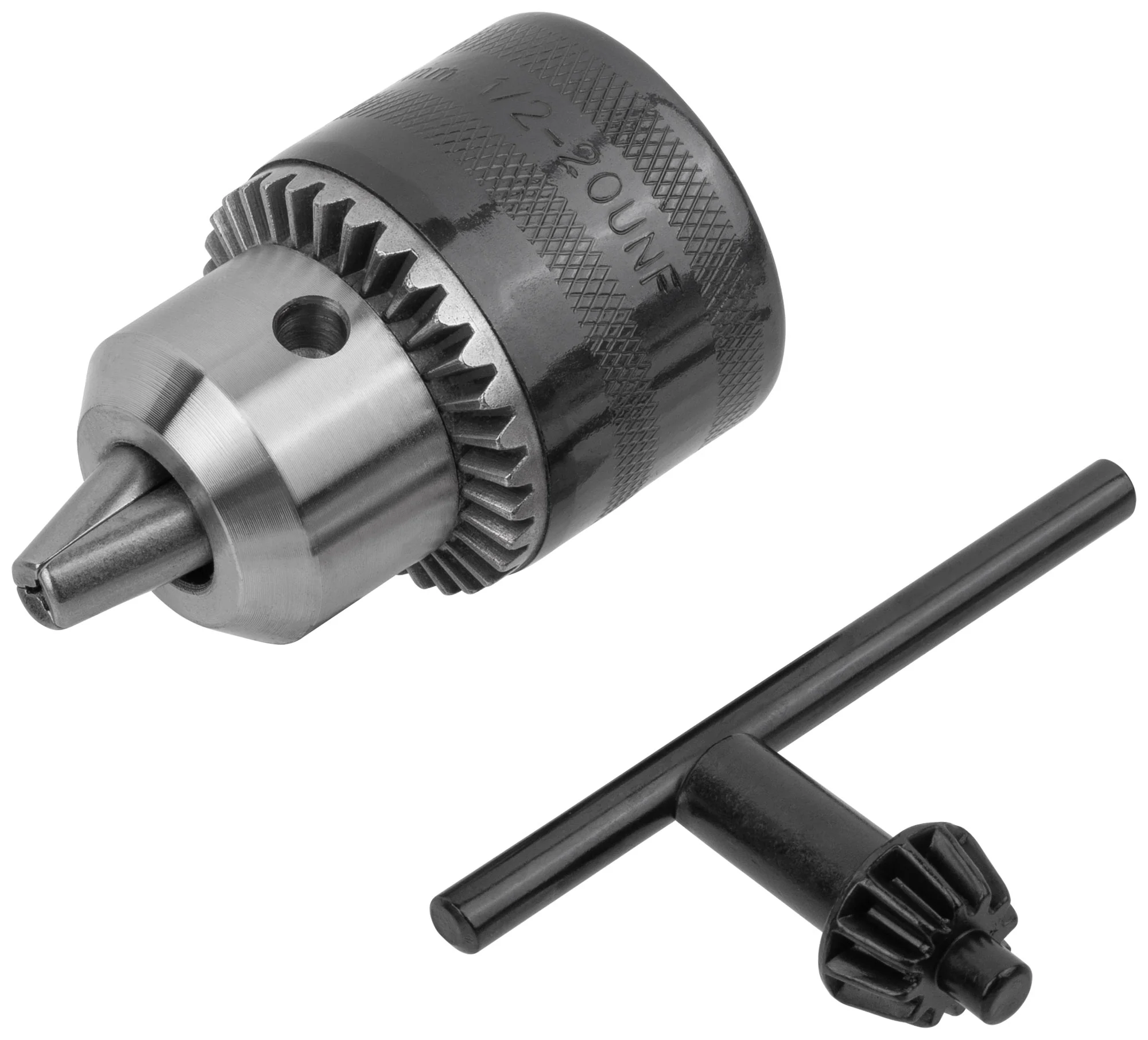 Ключевой патрон оснащен 3-х кулачковым механизмом, который гарантирует надежную фиксацию сверл диаметром от 1 до 13 мм. В комплект входит удобный Т-образный ключ, который позволяет быстро и легко заменять сверла без дополнительных усилий. Патрон поставляется в картонной коробке, что обеспечивает его сохранность при транспортировке и хранении.