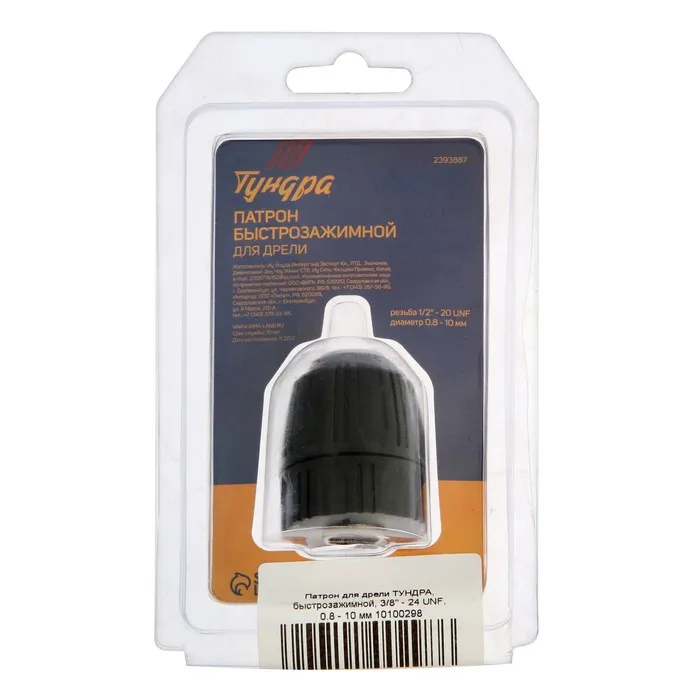 Патрон для дрели ТУНДРА, быстрозажимной, 3/8" - 24 UNF, 0.8 - 10 мм — Характеристики