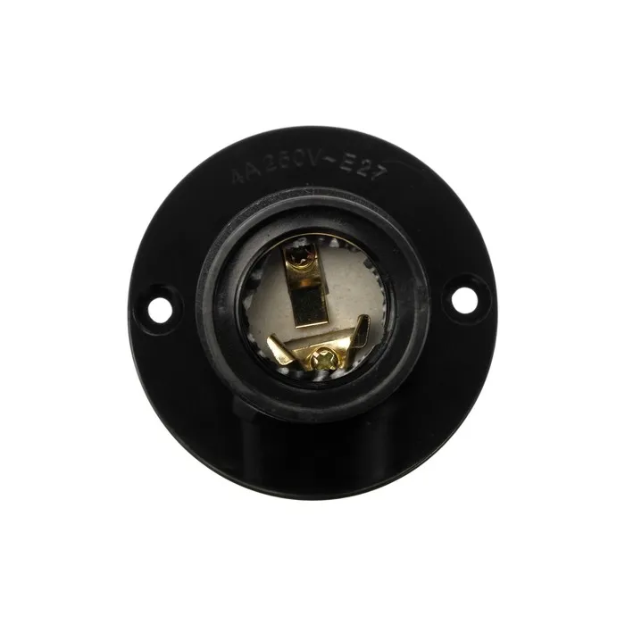 Прочный карболитовый патрон предназначен для любых ламп с диаметром цоколя 27 мм (Е27). Термостойкий патрон чаще всего находит применение в закрытых осветительных приборах. Температура возгорания патрона: от +530 °С до +640 °С. При нагревании не подвержен тлению, плавлению, деформации. Тип фиксации цоколя лампы – винтовой. Контактная группа из электротехнической латуни обеспечивает надежный контакт с ламповым цоколем, исключающий искрение и образование конденсата.