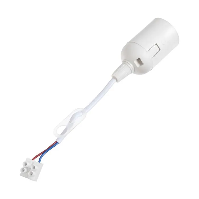 Используйте пластиковый патрон для подключения лампы с самым распространённым типом цоколя E27. Собранное изделие отлично подходит для установки в качестве постоянного и временного освещения.